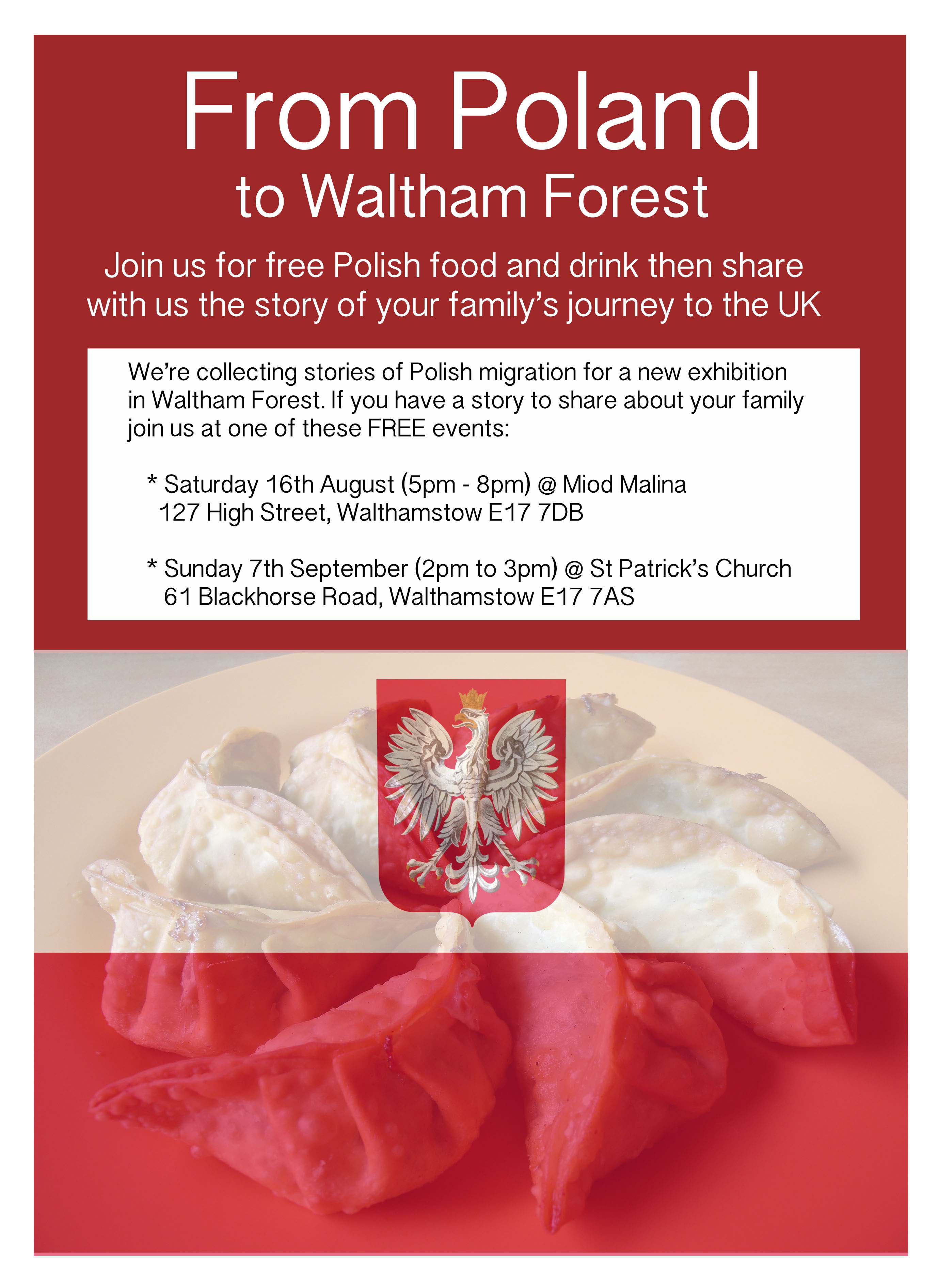 A4_PORTRAITPolish people make up 5% of the Waltham Forest population. But not everyone with Polish blood came over to the UK in the 1990s. Poles have been migrating to this area since the mid 1800s. It’s surprising how many people have Polish blood in their family.
