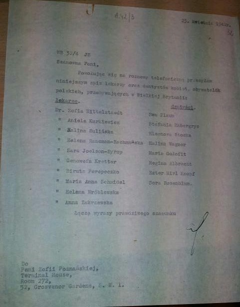 In addition, I found a letter addressed to Zofia Poznanska asking to approve and grant rights for Polish doctors and dentists to practise their profession in Britain: